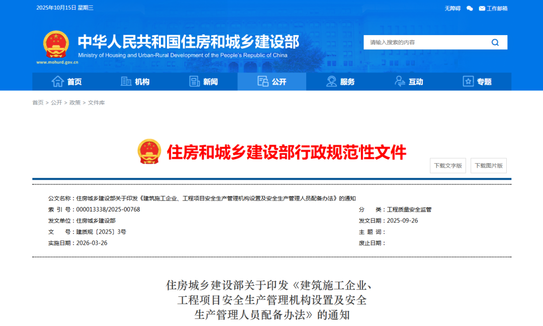近日,住房城乡建设部印发《建筑施工企业、工程项目安全生产管理机构设置及安全生产管理人员配备办法》。